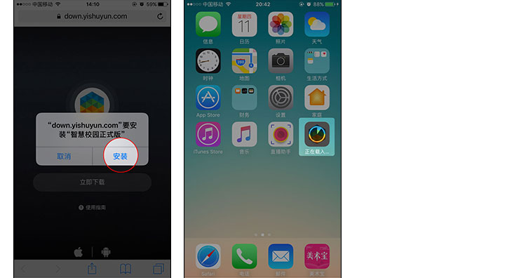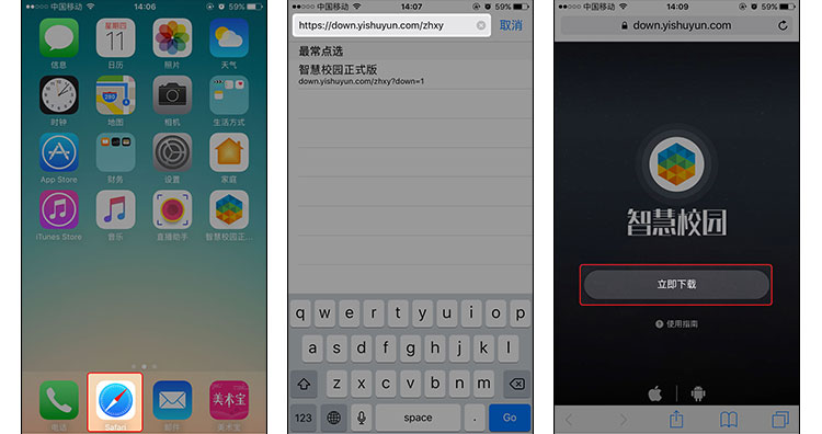 首先点击手机浏览器,如:苹果系统点击【Safari】。输入下载地址并确认,点击页面中的【立即下载】,然后点击【安装】后,等待片刻即完成安装。