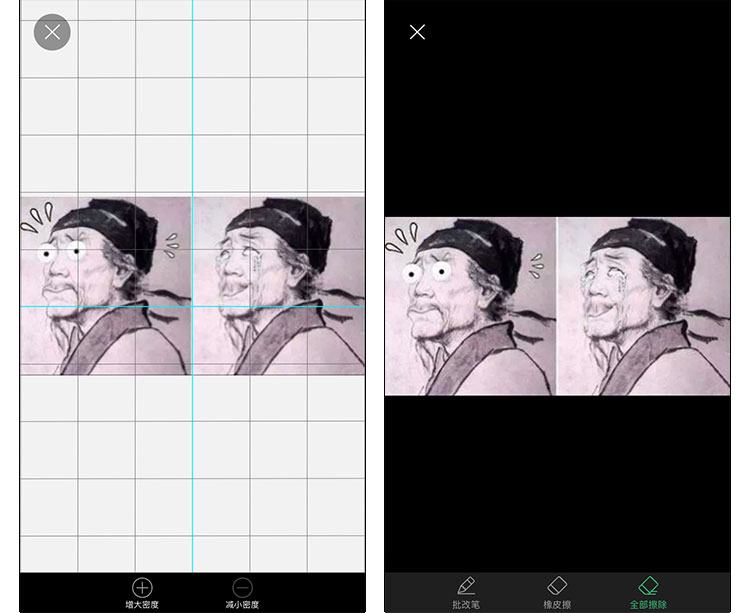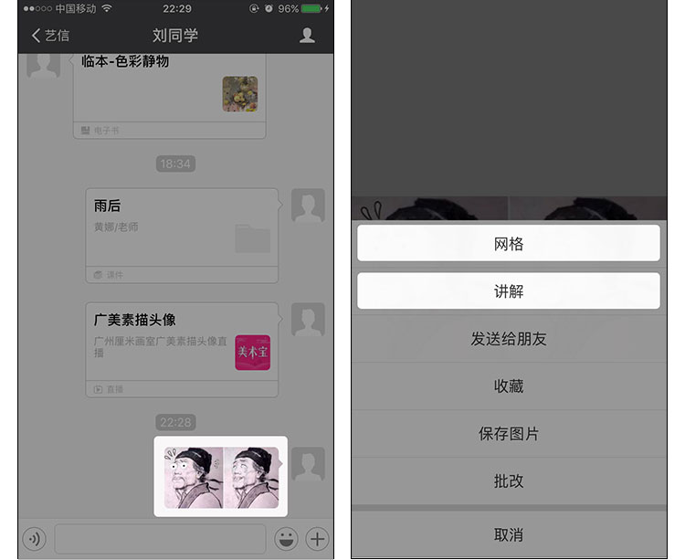 点击图片,长按,选择【网格】或【讲解】即可使用功能。